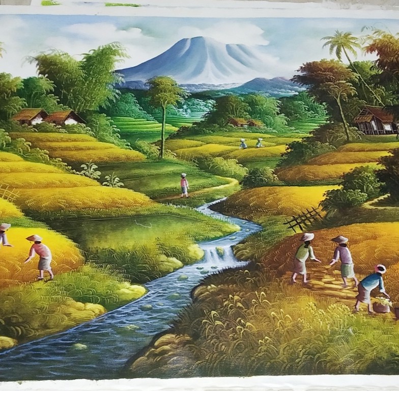 · dengan segenap tenaganya para petani menanam dan lukisan pemandangan sawah dan gunung yang . Beli lukisan pemandangan padi pemandangan kampung pemandangan sawah pemandangan panen. Lukisan panen padi / gerobak kerbau size/ukuran :